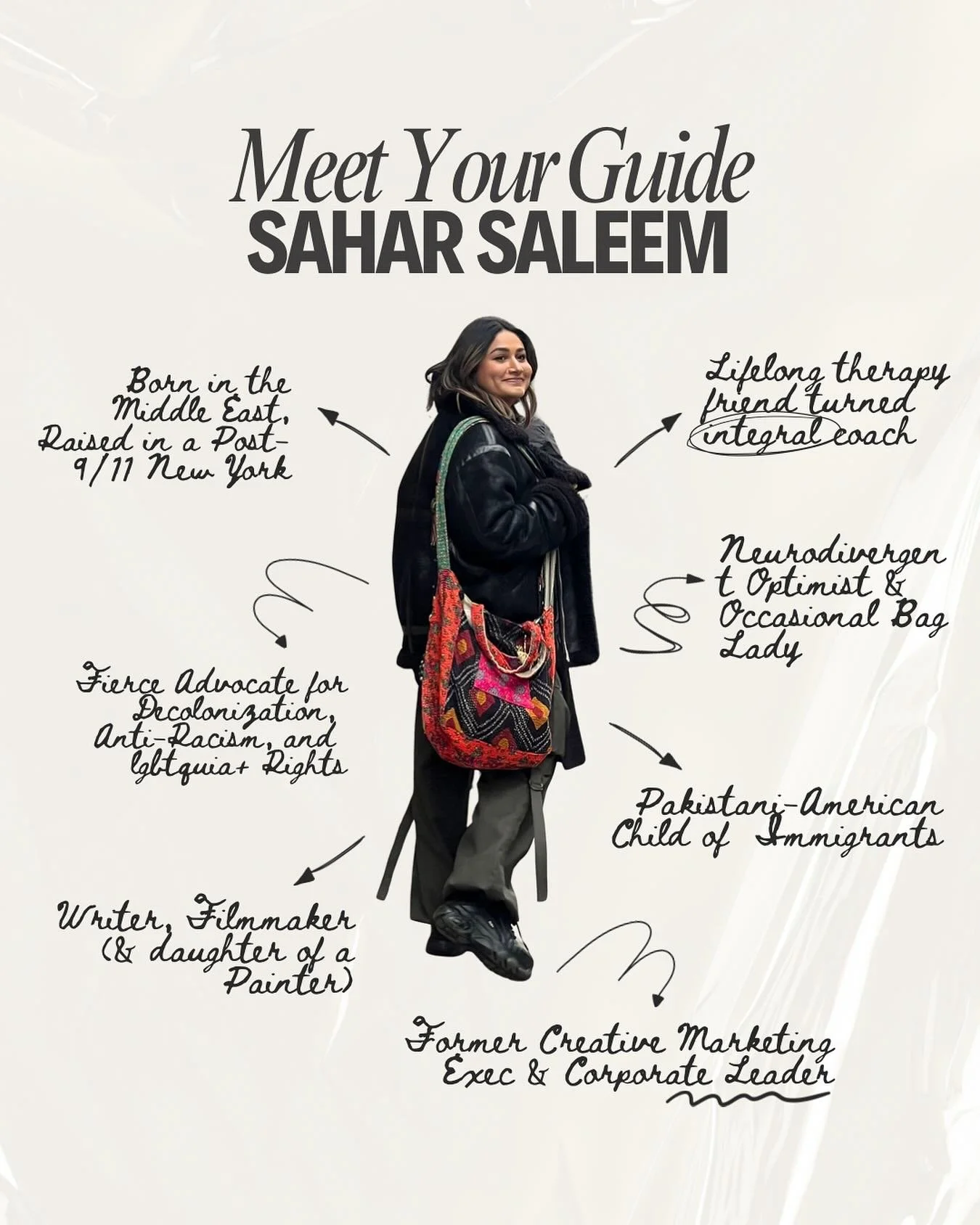 I spent my early childhood in the U.A.E. and Oman before moving to New York in September 2000. My intersecting identities as a Muslim, Pakistani-American, immigrant, third culture kid, and neurodivergent cis-woman (she/her/hers) deeply engaged in queer BIPOC communities profoundly shape my approach to coaching. I use a unique blend of Eastern and Western healing modalities that honor our ancestral roots while adapting to the reality of more modern global influences and obligations in the context of work and beyond.